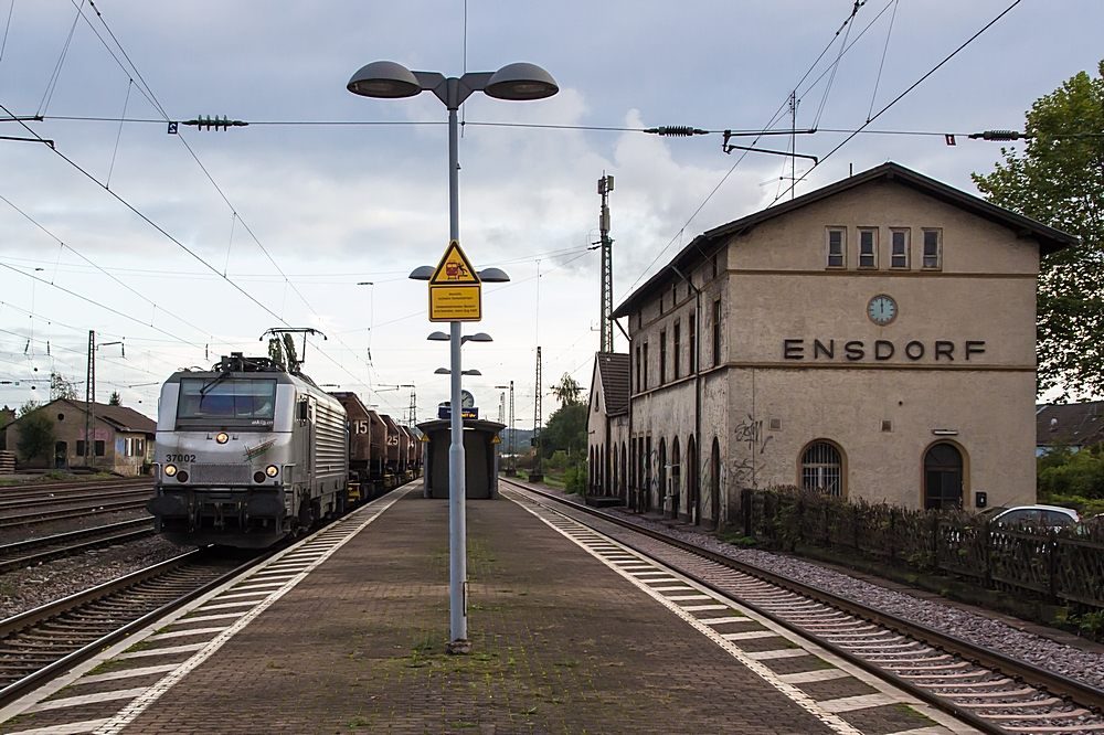 Am trüben 7. Oktober 2015 bringt die 37002 den leeren Flüssigeisenzug DGS 91312 von Saarstahl Völklingen zur Dillinger Hütte