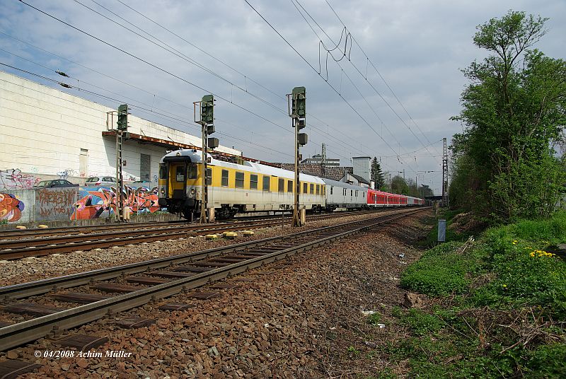 Gegen 08:40 Uhr verl?sst der Testzug Trier wieder in Richtung Koblenz; hier in Trier - Nord beim Bundesbahnwerk.