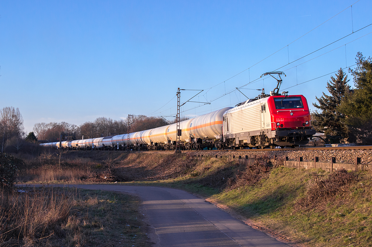 Am 17. Januar hat 187 111 mit dem EZ 51914 von Mannheim Rbf nach Saarbrücken Rbf bei der Durchfahrt von Jägersfreude ihr Ziel fast erreicht